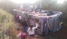 Veículo da empresa Neném Turismo saiu da pista e tombou em trecho da rodovia BR-251; maior parte dos passageiros seria de cidades do Sertão