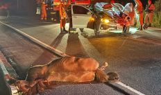 Motorista do carro não sofreu nenhum ferimento, enquanto o cavalo envolvido no acidente morreu no local