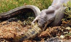 Cobra píton gigante engole crocodilo inteiro na Austrália