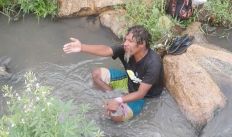 Popular flagra homem tomando banho em canal de esgoto sanitário em Delmiro Gouveia
