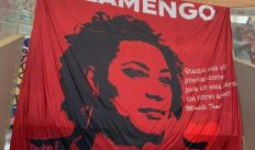 Na presença de Bolsonaro, Flamengo Antifascista ergue bandeira com rosto de Marielle