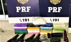Garota de 18 anos é presa com fuzil, pistolas e droga que vinha de São Paulo para o Sertão