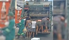 Famílias procuram comida em caminhão de lixo em Fortaleza