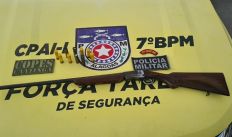 Prisão ocorreu no povoado Bebedouro, que fica na zona rural do município; espingarda calibre 36, outra de pressão 5.5 e cartucho foram encontrados