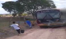 VÍDEO: Enquanto transportava crianças para escola, ônibus escolar pega fogo em Tapera