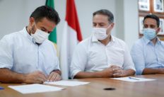 Governador e secretário da Educação, Rafael Brito, entregaram em mãos o PL ao deputado Marcelo Victor