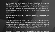 Nota esclareceu que animal solto na pista provocou acidente e que houve apenas danos materiais no veículo que transportava pacientes para Maceió