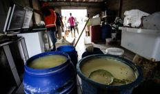 O salão estava infestado de moscas e até larvas foram encontradas em baixo de um dos recipientes usados para acondicionar o soro que provém