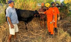 Bezerro cai em poço e é resgatado pelos Bombeiros em Santana do Ipanema