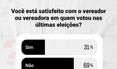 Resultado de enquete revela insatisfação de eleitores com vereadores que ajudaram a eleger