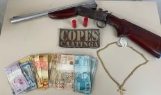 Polícia encontrou espingarda, dinheiro e objetos roubados com ele, que era suspeito de outros furtos na região, incluindo um ocorrido nas Lojas