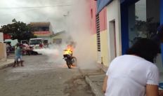 Vídeo: motocicleta pega fogo no Centro de Monteirópolis na manhã desta terça-feira