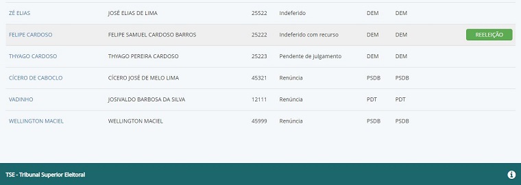 No caso de Felipe Cardoso, o portal do TSE mostra que a candidatura está “indeferida com recurso”, o que significa que ainda pode haver uma decisão que beneficie o candidato, mantendo, portanto, a candidatura válida.