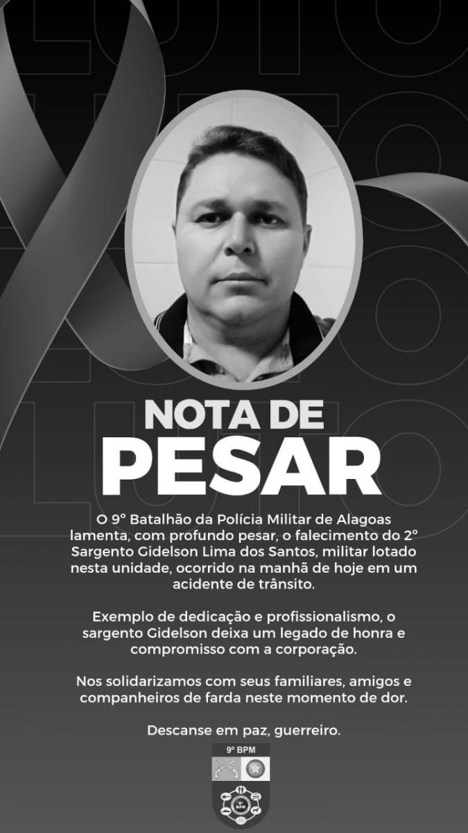 O falecimento precoce de Gidelson Lima causou grande comoção entre os colegas de farda e a comunidade local. Em nota oficial, o comando do 9º - BPM lamentou profundamente a tragédia e manifestou pesar: