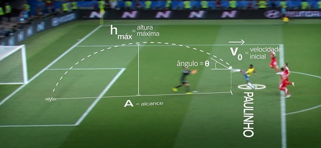 A principal lição na hora de estudar física é: esqueça o golaço que Philippe Coutinho fez na partida de estreia do Brasil contra a Suíça. Ele foi eleito pela Fifa o mais bonito da primeira fase da Copa do Mundo da Rússia, onde os 32 times marcaram um total de 122 gols em 48 jogos da primeira fase, mas é a física por trás do gol de Paulinho contra a Sérvia que tem mais probabilidade de aparecer nas provas.
