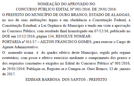 Aprovados em concurso público são nomeados para tomar posse dos cargos em Ouro Branco