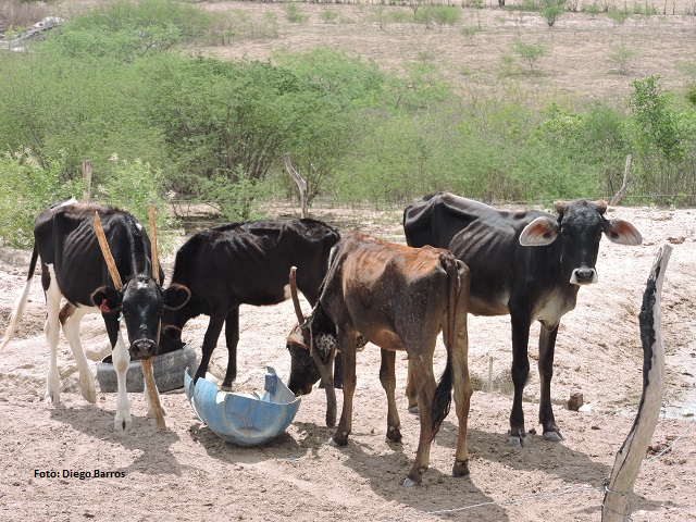 Animais permanecem de cabeça abaixada, mesmo em área sem nenhum vegetal que lhes sirva de alimento, em Major Izidoro, um dos principais municípios da Bacia Leiteira de Alagoas