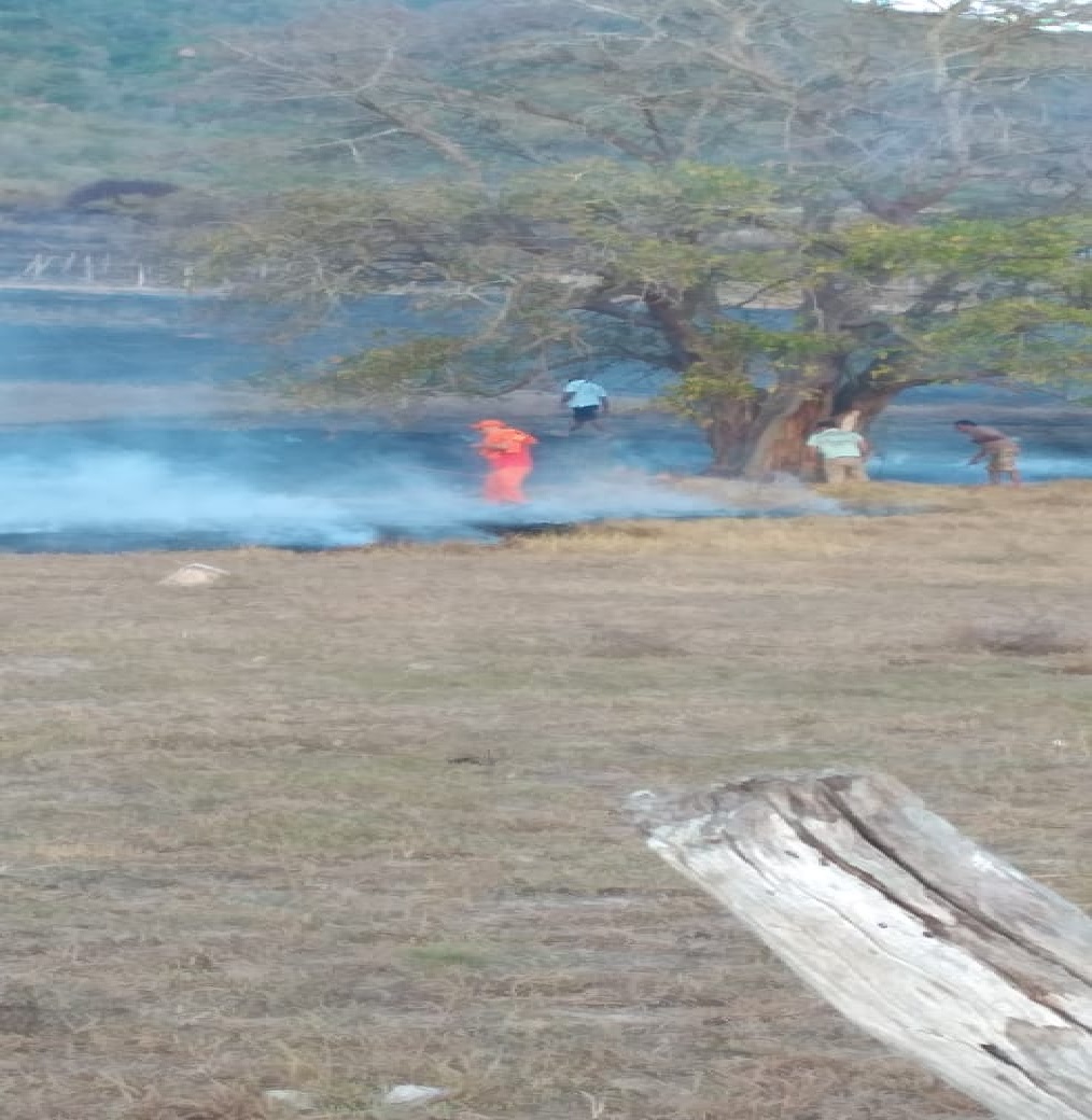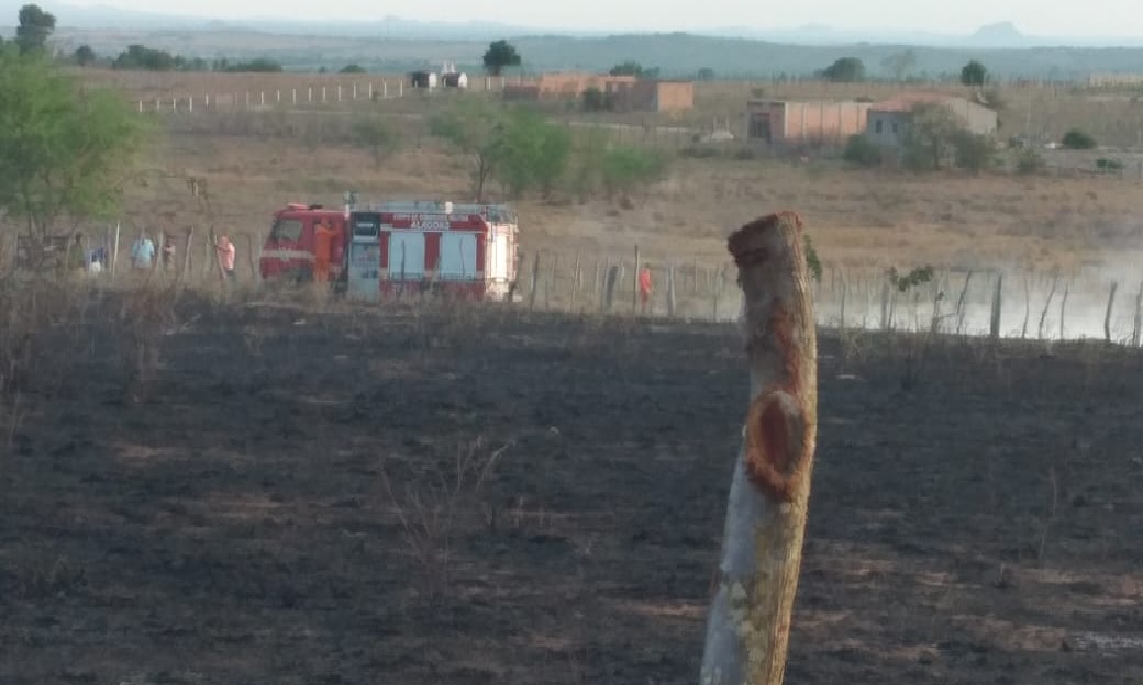 Com a ajuda de populares, equipes do 8º Grupamento de Bombeiros Militar (GBM) foram mobilizadas para debelarem um incêndio por trás de um campo de futebol, na entrada da cidade de Pariconha.