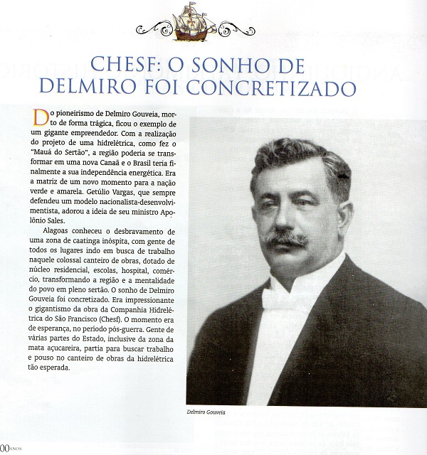 O empresário Delmiro Augusto da Cruz Gouveia, cearense que escolheu o Sertão de Alagoas para viver e investir, no início do século XX, é destaque no fascículo 5 de uma publicação especial chamada Alagoas 200 Anos, do jornal Gazeta de Alagoas.