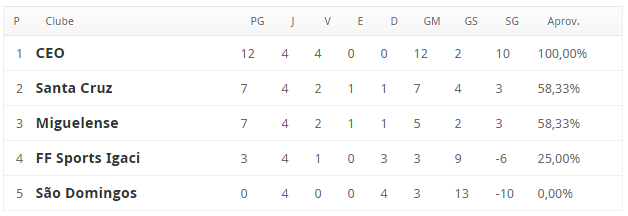 Também na tarde de hoje, mas no estádio Olival Elias de Moraes, em Boca da Mata, o Santa Cruz ficou no 0 a 0 com o Miguelense. Os dois times continuam empatados com sete pontos. O Santa Cruz leva vantagem nos gols marcados, com dois gols a mais que o Miguelense, terceiro colocado.