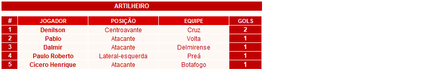 VOLTA - Fábio (12), Silas (2), Rivonildo (3), Bruno (4); Alexandre (5), Felipe Wagner (6), Neto (7), Giliarde (8); Pablo (9), Joel (10) e Lucas (11).