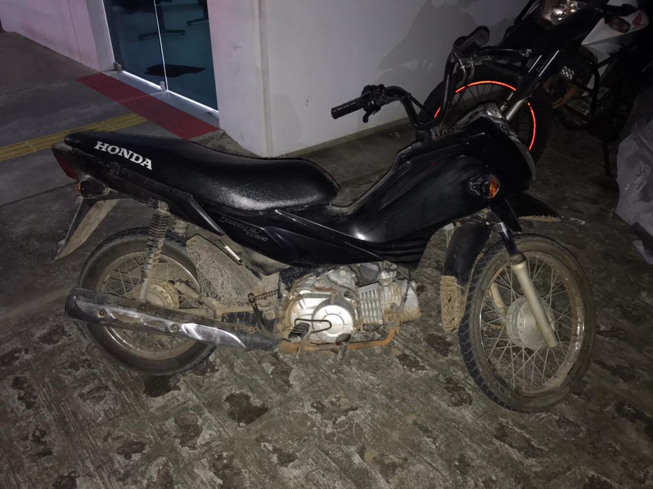 Arma de fogo, celulares, dinheiro e moto furtada ou roubada foram apreendidos com suspeito capturado; comparsa dele conseguiu escapar