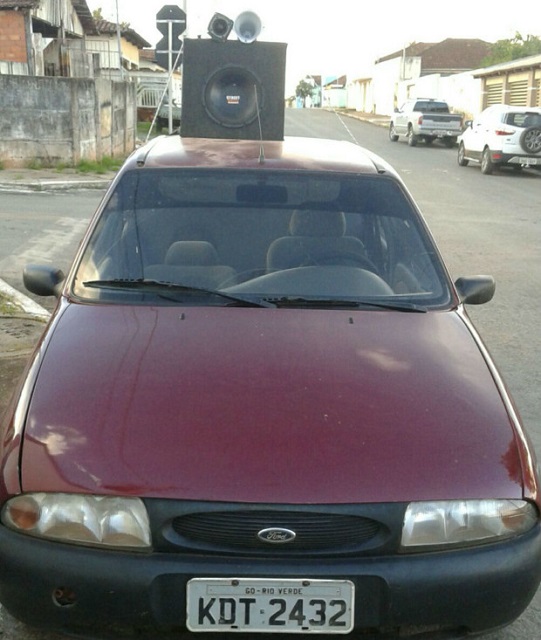 | Carro usado pela dupla para fazer "campanha" com pedido de alimentos e dinheiro no Estado de Goiás (Foto: Ascom/PC de Goiás) |