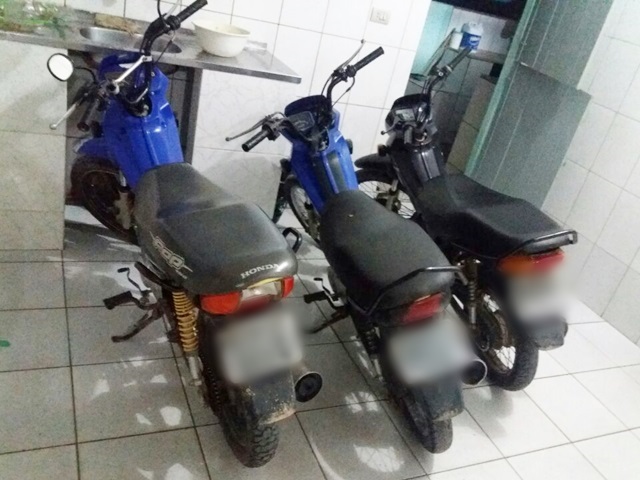 Três das motocicletas apreendidas. Foto: Cortesia/PM-AL