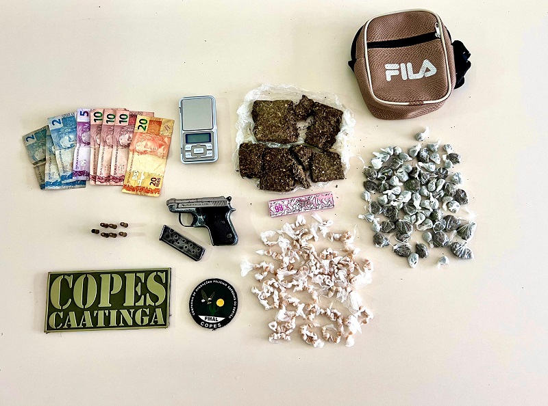 O material apreendido foi levado para o Centro Integrado de Segurança Pública (Cisp), situado no município, para o registro da ocorrência de porte ilegal de arma de fogo, tráfico de drogas e morte por intervenção policial.