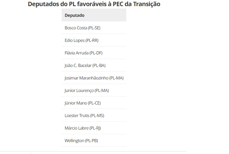 Durante a votação, o PL orientou seus deputados filiados a votar contra a PEC da Transição. A indicação da orientação é um momento em que o partido se posiciona sobre determinado assunto e espera que os parlamentares sigam.