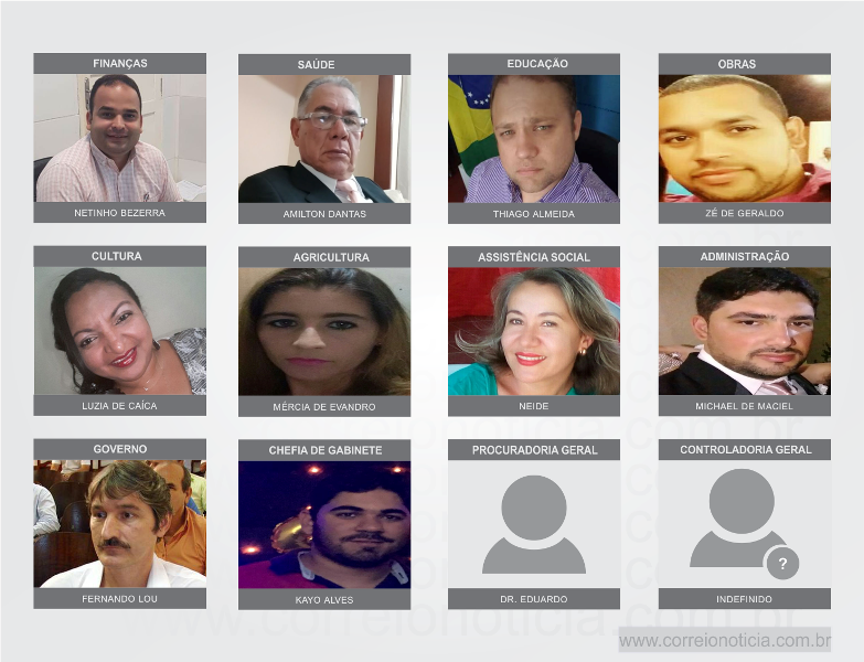 Para a Chefia de Gabinete, que era de Guilherme Júnior, foi nomeado o jovem Kayo Alves e para a Procuradoria-Geral foi definido Dr. Eduardo, de Maceió. A Controladoria-Geral ainda não tem um titular, assim como não foi definido quem vai comandar a Comunicação.