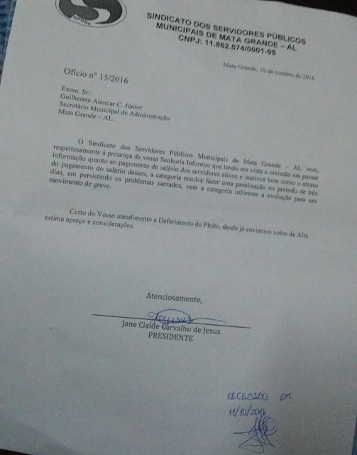 O Sindicato dos Servidores Públicos Municipais de Mata Grande, no Sertão de Alagoas, denunciou que há um atraso no pagamento dos salários aos servidores da Saúde e da Educação. A entidade afirma que os trabalhadores ainda não receberam o pagamento pelo mês de setembro, que deveria ter sido pago por volta do dia 6 de outubro.