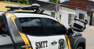 Motorista perde controle de veículo, provoca capotamento e deixa 2 pessoas feridas em Delmiro